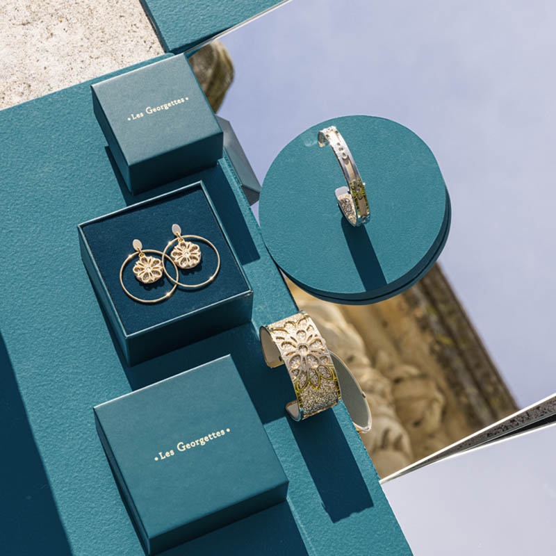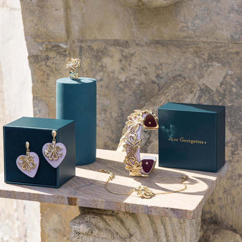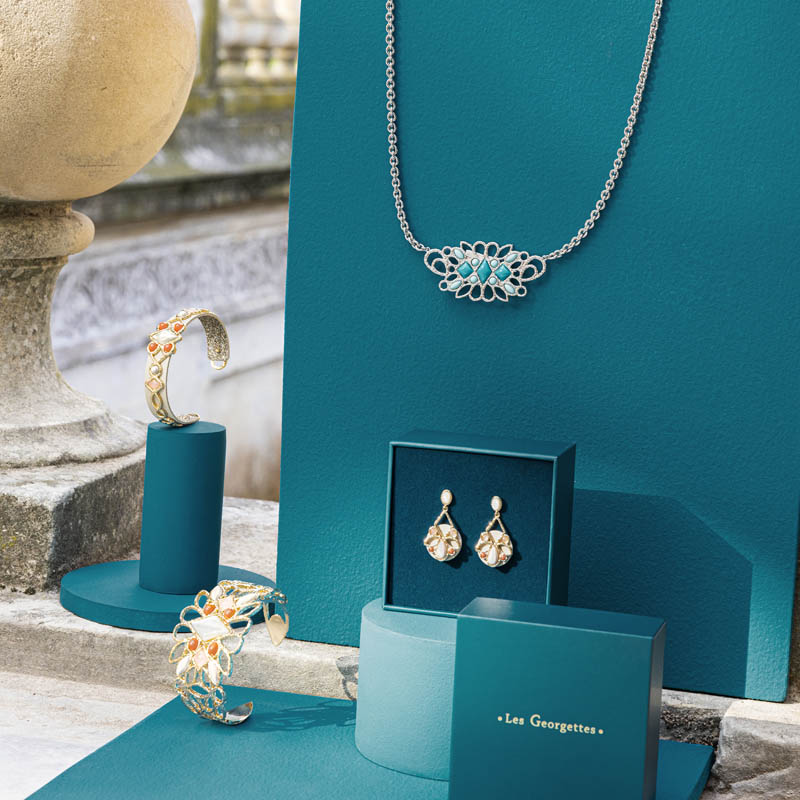 Cette saison est placée sous le signe du renouveau. On y mixe et bouscule les codes habituels des Georgettes. Nos équipes se sont largement inspirées des étoiles et du thème de la divination pour imaginer des bijoux au style bohème et mystique. L'œil protecteur figure ainsi sur plusieurs parures. Sur la première, renommée ŒIL, celui-ci figure au centre du bijou avec un cercle formé par de petites pierres en oxyde de zirconium. Sur la seconde, la rayonnante ligne DIVINE, il figure de façon plus discrète. Enfin, il est aussi réinterprété sur la ligne ASTRALE, aux bijoux lumineux et inédits.