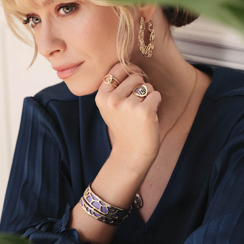 Au milieu de la jungle amazonienne, se révèlent une faune et une flore luxuriantes, magiques et captivantes. Un vrai terrain de jeu pour les explorateurs, et tant d’inspirations pour Les Georgettes ! 2 lignes de bijoux reprennent ici des motifs écailles, avec d'un côté Mariposa (« papillon » en espagnol) et de l'autre Caïman, à la trame reptile. En écho à la végétation tropicale, les bijoux Jungle se parent de subtiles gravures tandis que la parure Ara se révèle haute en couleurs !